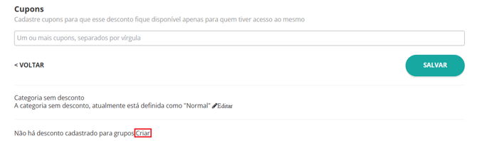 2. Na seção de desconto para grupo, clique em Criar, na parte inferior da página.