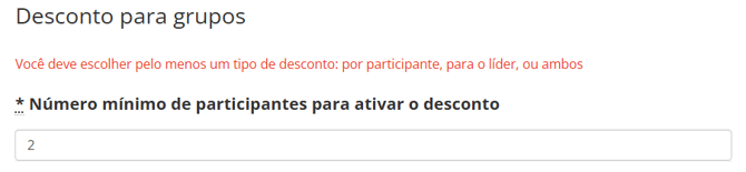 2.1 Informe a quantidade mínima de inscrições necessária para que o desconto seja ativado - esse número será a regra que ativa automaticamente o benefício.