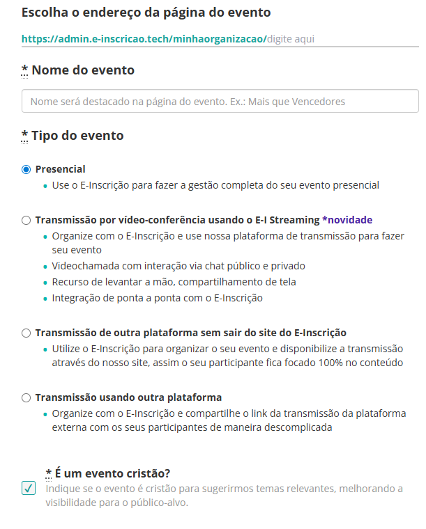 Pronto! Agora você já sabe como criar um evento de culto na E-Inscrição e organizar melhor a participação nos encontros da sua igreja.