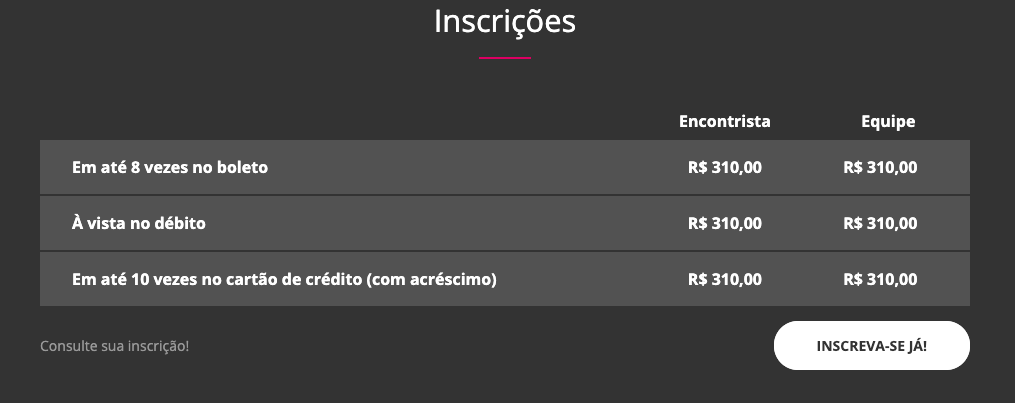 Se fizer sentido para o seu retiro, reserve um momento durante o encontro para vender a próxima edição com exclusividade para os participantes. Aproveite a emoção do momento e prepare aquele lote especial para esse público! Imagina vender 80% das inscrições antes mesmo de divulgar para o grande público? É possível e acontece com grande frequência em retiros de casais e acampamentos de jovens.