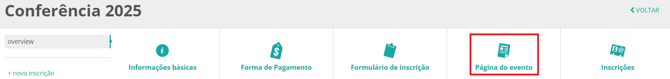 1. Dentro do painel do seu evento, clique no menu Página do evento.