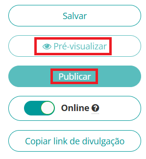 Nota: O botão Pré-visualizar, assim como o botão Publicar, são ativados somente depois que a seção é salva. Sempre que inserir novas informações, clique no botão Salvar.