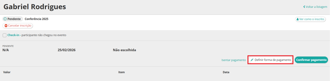 1. Após preencher o formulário do participante, clique em Confirmar Pagamento.