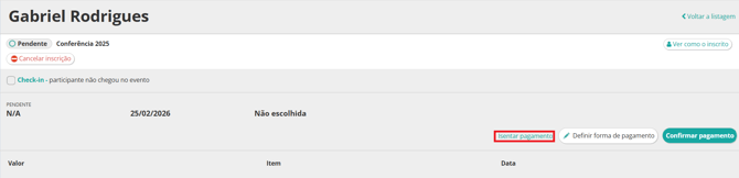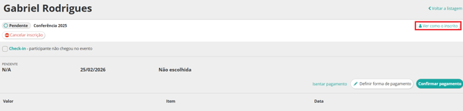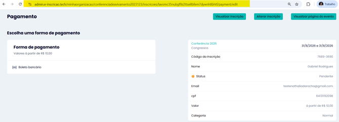3.4 Envie o link da página que se abrirá para o participante para que o pagamento seja efetuado.