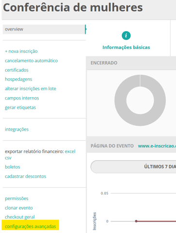 1. No menu à direita, no painel do evento, clique em Configurações Avançadas: