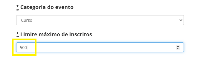 2. Insira a categoria do seu evento e o limite máximo de inscritos.