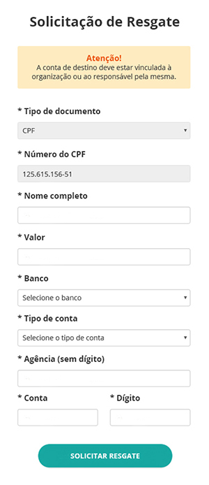 Obs. 2: Para que a solicitação de resgate seja bem-sucedida, a titularidade da conta bancária de destino precisa estar vinculada a este documento.