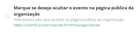 Ao ativar a proteção por senha, o evento é automaticamente ocultado da página pública da organização.