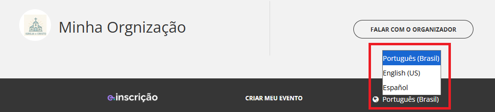 Essa alteração pode ser feita por você, para padronizar o idioma do seu evento, ou pelo próprio participante para visualizar no idioma de sua preferência.